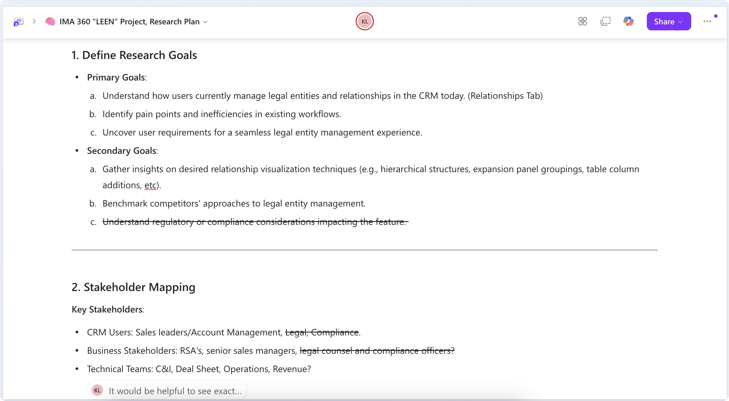 A living document allowed for a collaborative and flexible approach to discovery.