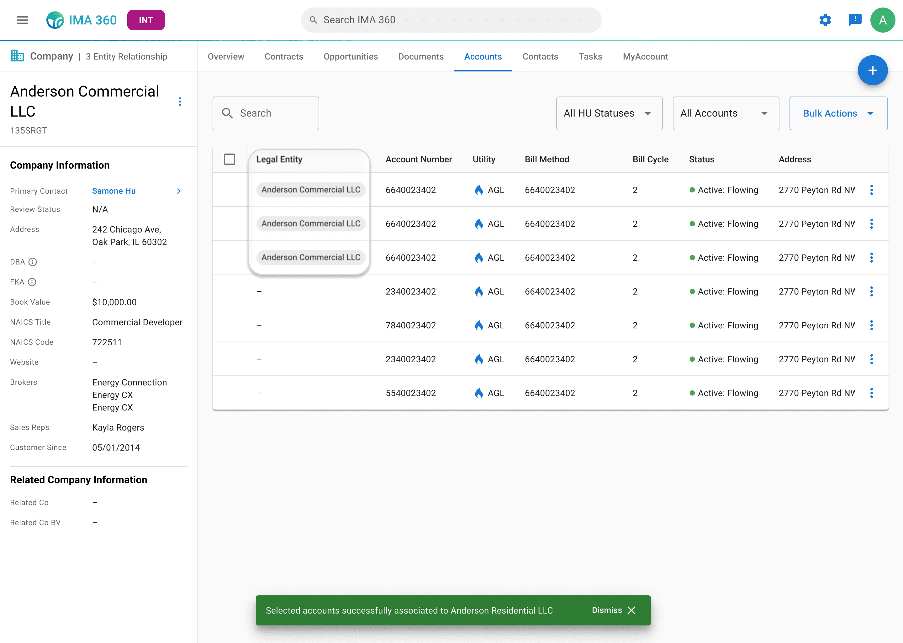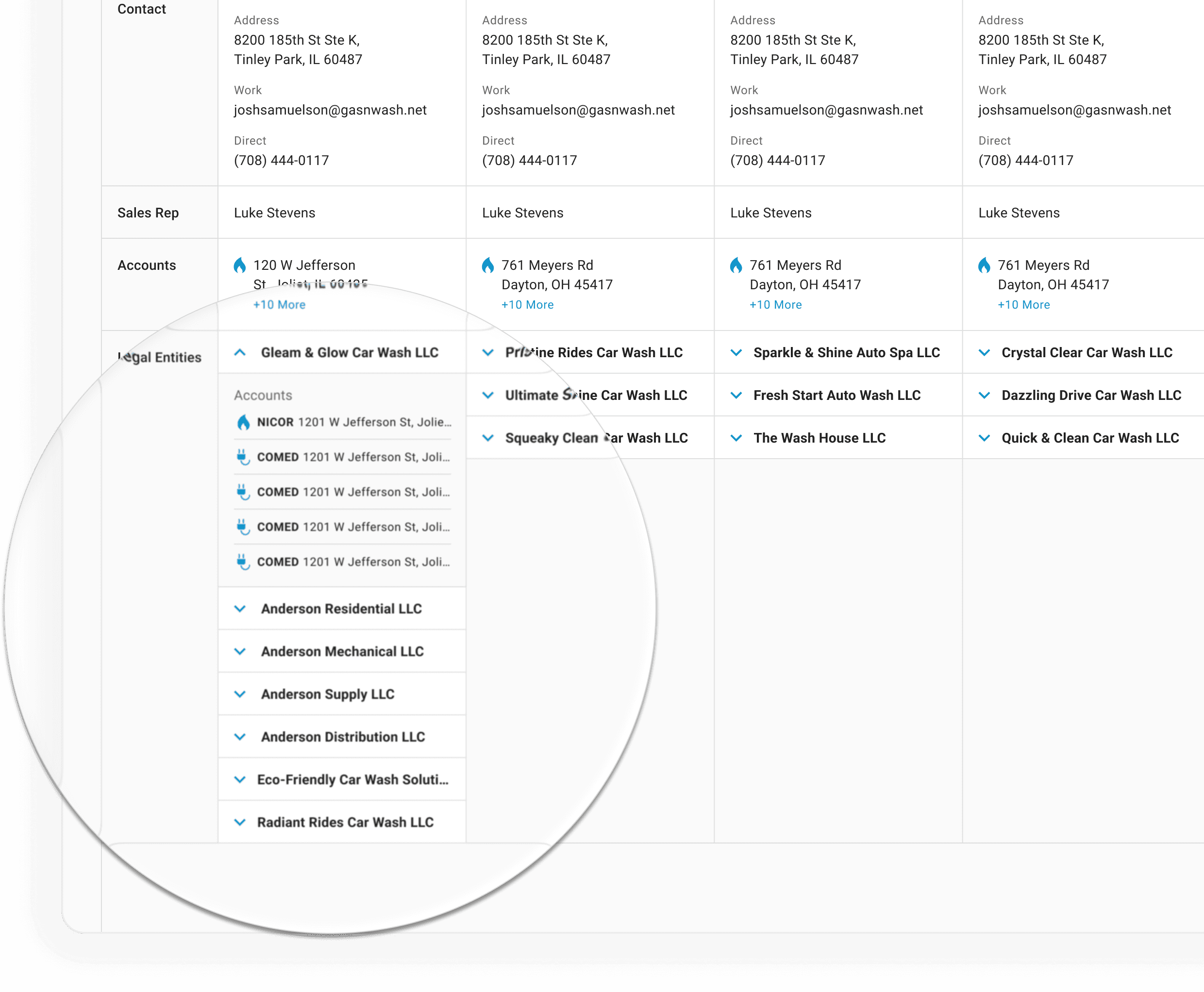 Accounts are now explicitly linked to the right legal entities, mirroring how customers organize by service locations.