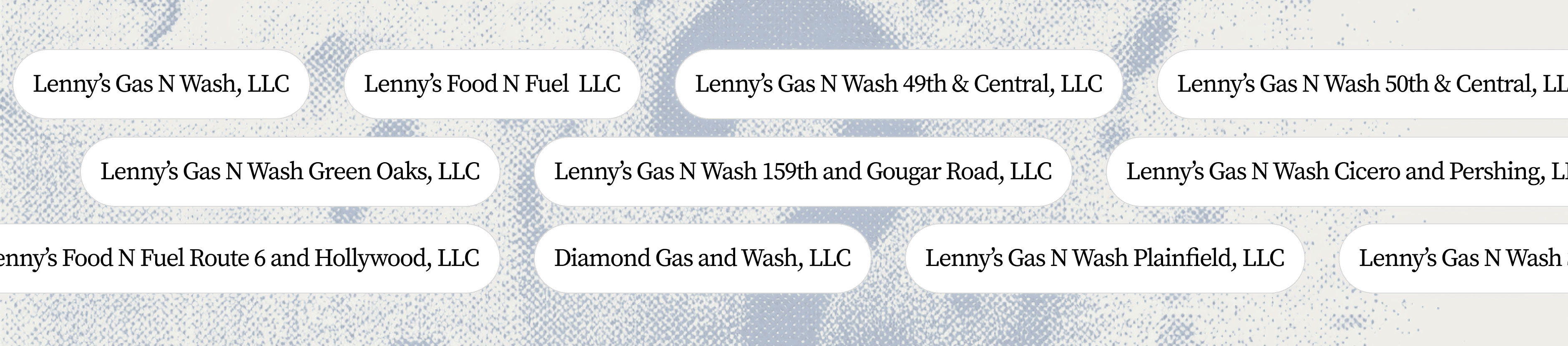 Example of multiple legal entity names for a single company record