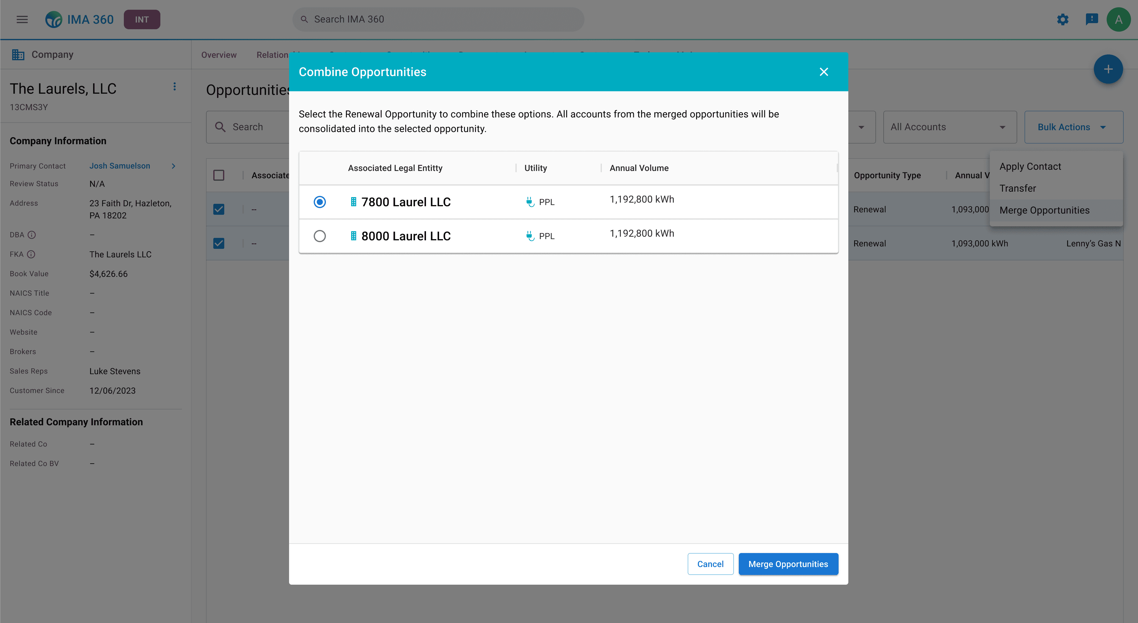 But when customers operate under multiple Legal Entity Names, IMA 360 doesn’t recognize this.